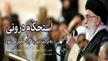 رهبر انقلاب اسلامی افزودند: جامعه اسلامی در اثر انسِ روزافزون با قرآن، «استحکام درونی» پیدا میکند و آن چیزی که به جوامع، قدرتِ حرکت و عبور از چالشها را میدهد، همین استحکام درونی است.