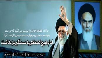 رهبر انقلاب اسلامی با تأکید بر اینکه "اعتماد به خدا و بیاعتمادی به مستکبرین " از اصول مسلم مبانی فکری امام رحمهالله بود، خاطرنشان کردند: البته این موضوع به معنای قطع رابطه با دنیا نبود زیرا ارتباط در حد معمول و محترمانه وجود داشت ولی هیچگونه اعتمادی به مستکبران و دنبالهروهای آنها وجود نداشت.
