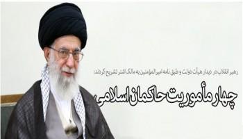 رهبر انقلاب در بیان وظایف مسئولان در فرمان امیرمؤمنان به مالک اشتر، افزودند: «گرفتن مالیات و حقوقی که مردم نسبت به دولت دارند»، دفاع از مردم و سرزمینشان، سوق دادن جامعه به صلاح و رستگاری و آبادانی و سازندگی کشور، ۴مأموریت اصلی است که مولای متقیان در نامه به مالک، بر دوش حاکمان میگذارند.