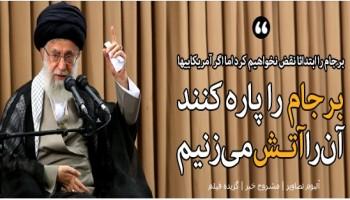 رهبر انقلاب با اشاره به زوایای پرابهام سند برجام که زمینهی سوءاستفادهی طرفهای مقابل را فراهم کرده است تأکید کردند: جمهوری اسلامی ابتدائاً برجام را نقض نخواهد کرد، زیرا وفای به عهد، دستور قرآنی است اما اگر تهدید نامزدهای ریاست جمهوری آمریکا مبنی بر پاره کردن برجام عملی شود، جمهوری اسلامی برجام را آتش خواهد زد که این کار هم دستوری قرآنی دربارهی نقض عهد متقابل است.
