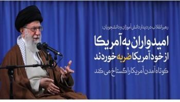 رهبر انقلاب اسلامی، خصومت عمیق امریکا با ملت ایران را موجب کوری چشمِ محاسباتی امریکاییها و تکرار اشتباهات آنها دانستند و افزودند: امریکاییها از روز اول پیروزی که انقلاب یک نهال باریک بود، دشمنی را شروع کردند و امروز هم که جمهوری اسلامی به درخت سرسبز و تناوری تبدیل شده، به همان توطئههای بینتیجه ادامه میدهند چرا که خصومت و کینهورزی، آنها را از دیدن و درک واقعیات و ارزیابی درست محروم کرده است.