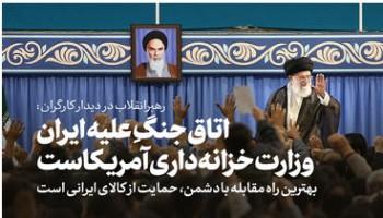رهبر انقلاب اسلامی خاطرنشان کردند: آنها اکنون تمرکز خود را بر جنگ اقتصادی و جنگ فرهنگی گذاشته اند و اتاق جنگ اقتصادی با نظام جمهوری اسلامی، وزارت خزانه داری امریکا است.