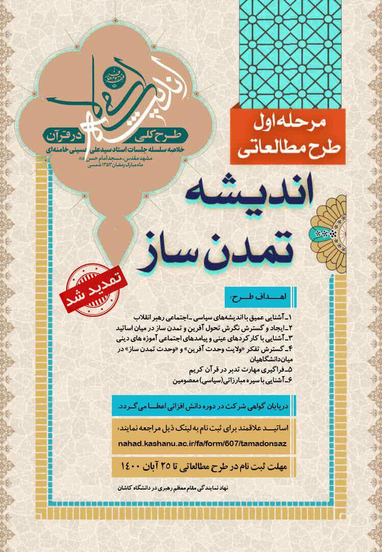 آغاز ثبت نام مرحله اول طرح مطالعاتی اندیشه تمدن ساز