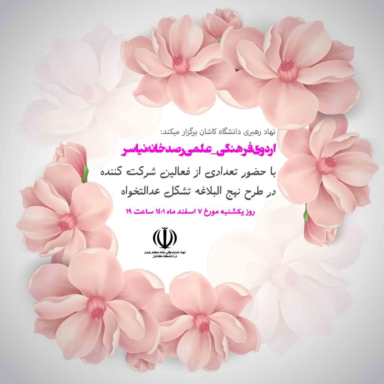 اردوی فرهنگی_علمی رصدخانه نیاسر با حضور تعدادی از فعالین شرکت کننده در طرح نهج البلاغه تشکل عدالتخواه در روز یکشنبه ۷ اسفند ۱۴۰۱ ساعت۱۹ به همت دفتر نهاد رهبری دانشگاه کاشان برگزار گردید.