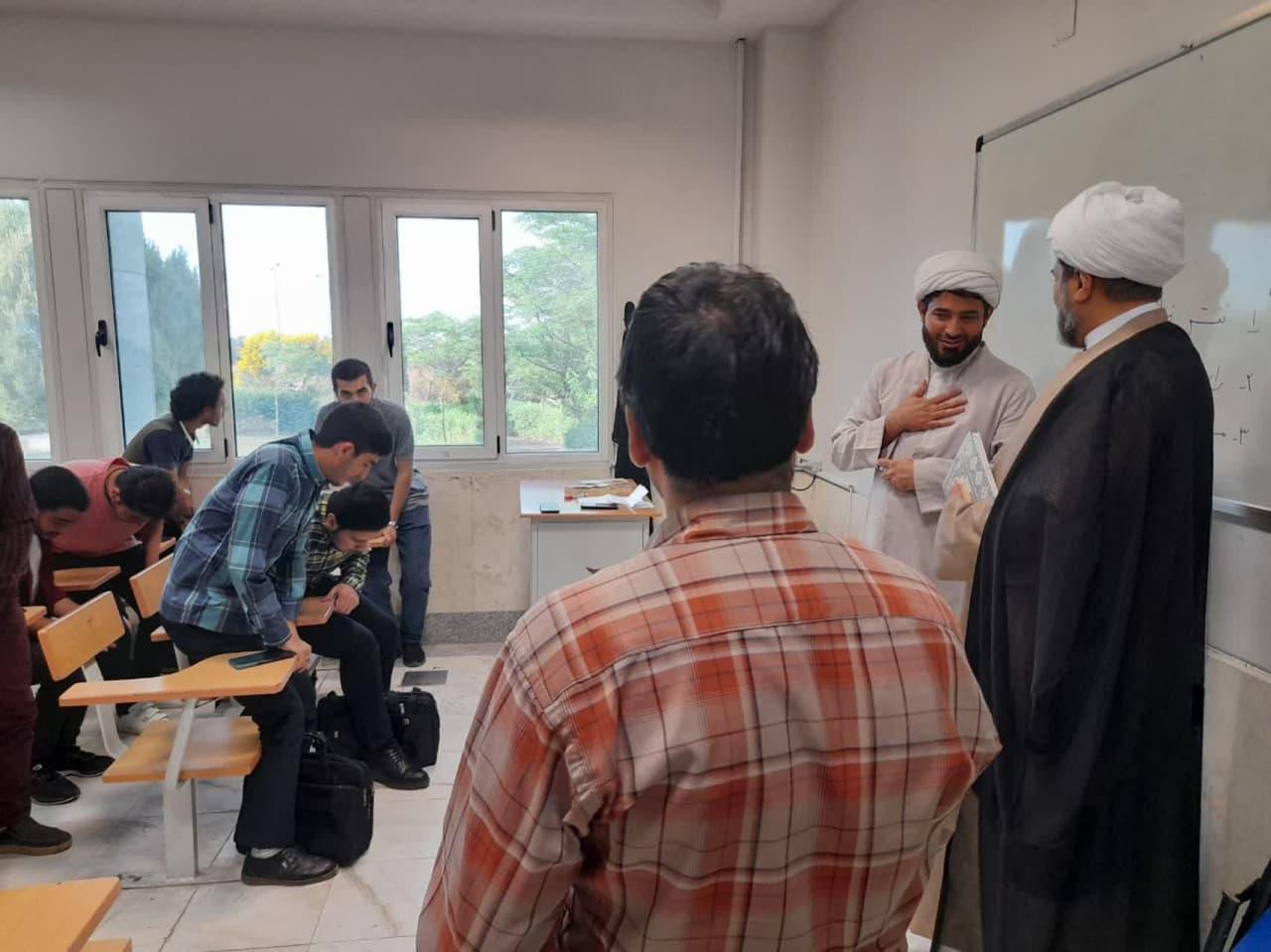 بازدید حجت الاسلام والمسلمین دکتر محمد جعفر محمدی مسئول نهاد نمایندگی رهبری از کلاس های حوزه علوم اسلامی و صحبت با دانشجویان علاقه مند به دروس حوزه علوم اسلامی دانشگاهیان.