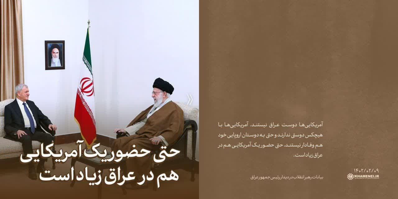 حضرت آیتالله خامنهای تاکید کردند: حتی حضور یک امریکایی هم در عراق زیاد است.
