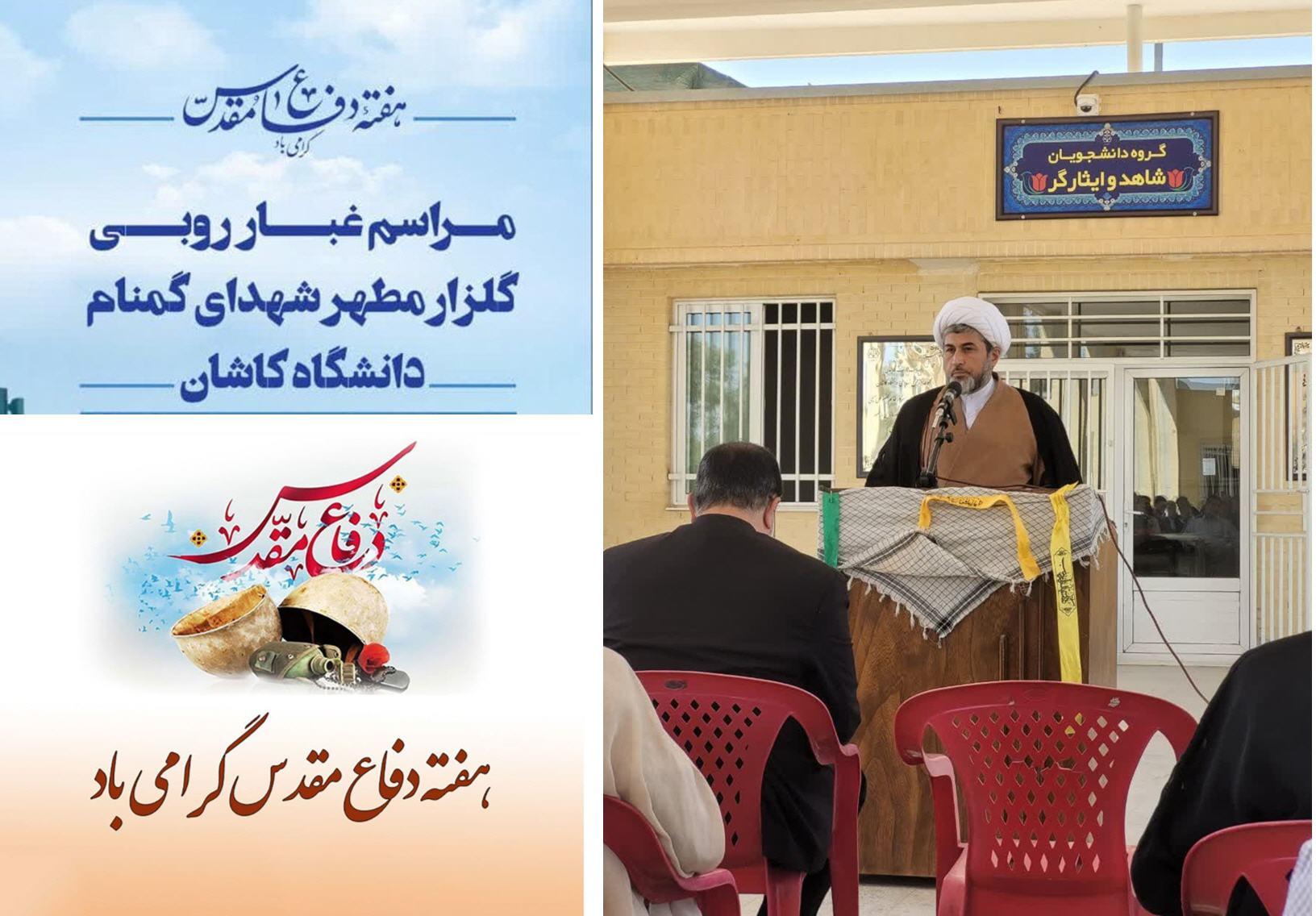 سخنرانی مسئول نهاد رهبری در مراسم غبار روبی گلزار مطهر شهدای گمنام دانشگاه کاشان در هفته دفاع مقدس