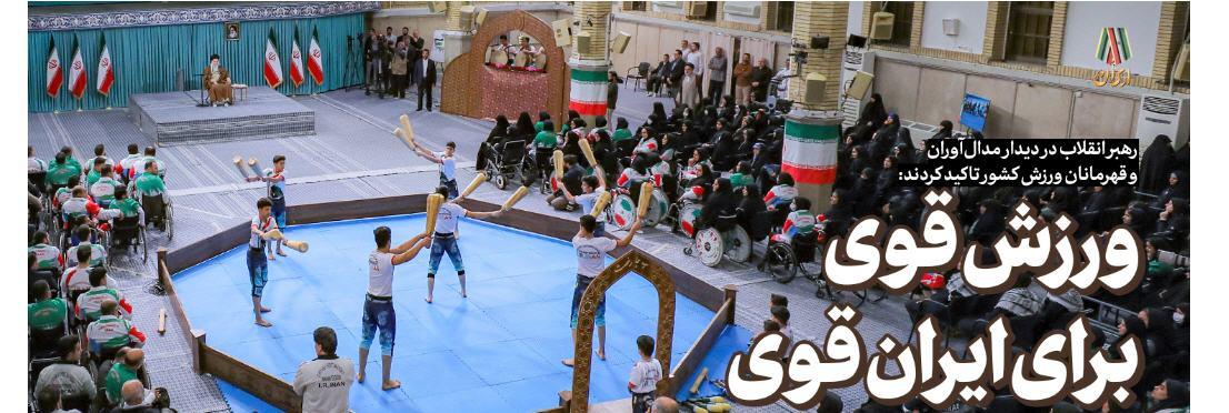حضرت آیتالله خامنهای اینگونه رفتارهای تحسین برانگیز را بخشی از قدرت ملی ایران برشمردند و گفتند: ورزشکاران اغلب کشورها برای ملت خود افتخارآفرینی میکنند، اما این رفتارهای زیبا و پرمعنا بالاتر از افتخارات ورزشی است چرا که افتخارات انسانی است.