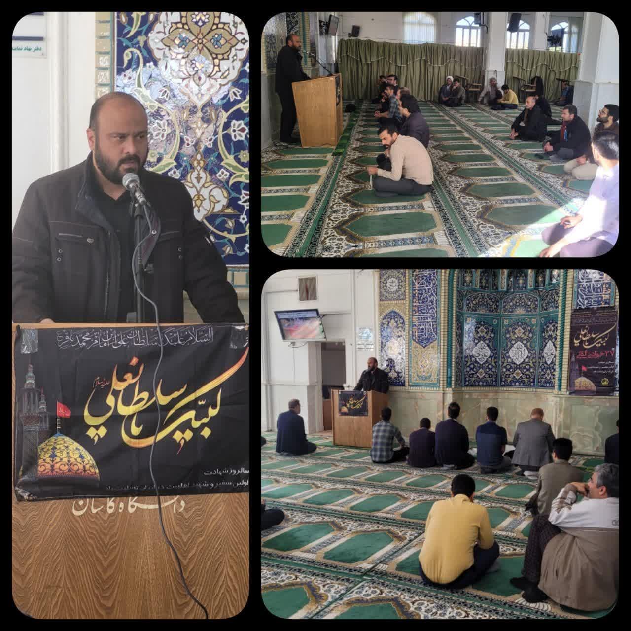 به مناسبت شهادت حضرت سلطانعلی فرزند امام محمدباقر علیهم السلام،مدیر محترم امور فرهنگی دانشگاه، جناب آقای پوران در مسجد دانشگاه کاشان سخنرانی کردند-چهارشنبه ۲۰ دی ماه ۱۴۰۲