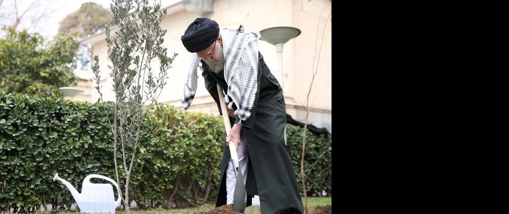 کاشت نهال توسط رهبر معظم انقلاب در روز درختکاری