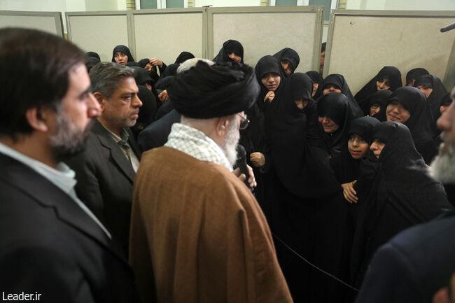 حضرت آیتالله خامنهای رهبر معظم انقلاب اسلامی یکشنبه شب بر پیکر دو قاضی شهید حجج اسلام آقایان شیخ علی رازینی و شیخ محمد مقیسه اقامه نماز کردند.