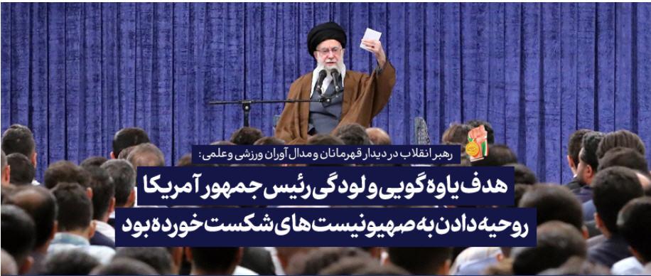 رهبر معظم انقلاب در دیدار مدال‌آوران ورزشی و علمی در سخنانی خطاب به رئیس جمهور آمریکا: