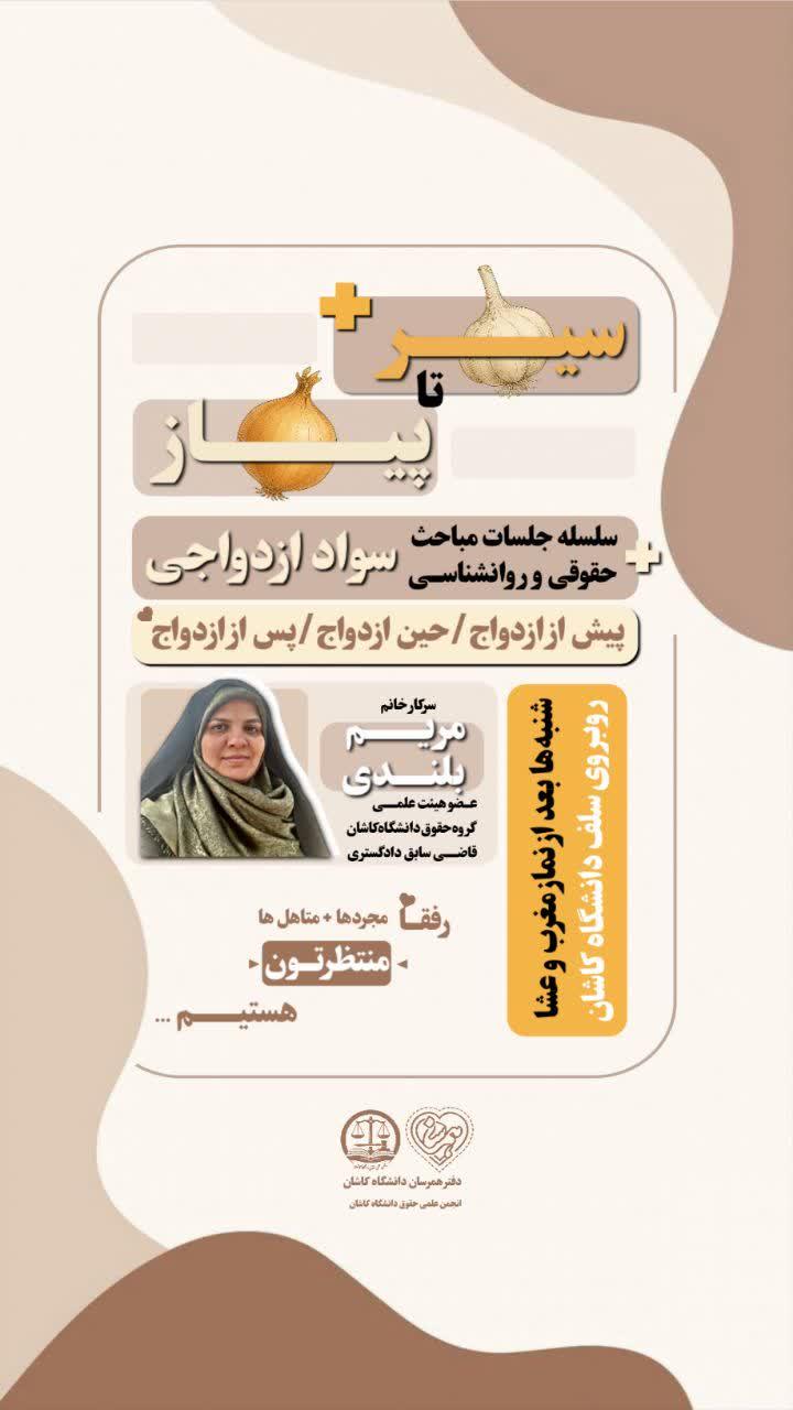 برگزاری جلسه سیر تا پیاز با حضور سرکار خانم دکتر مریم بلندی در دانشگاه کاشان