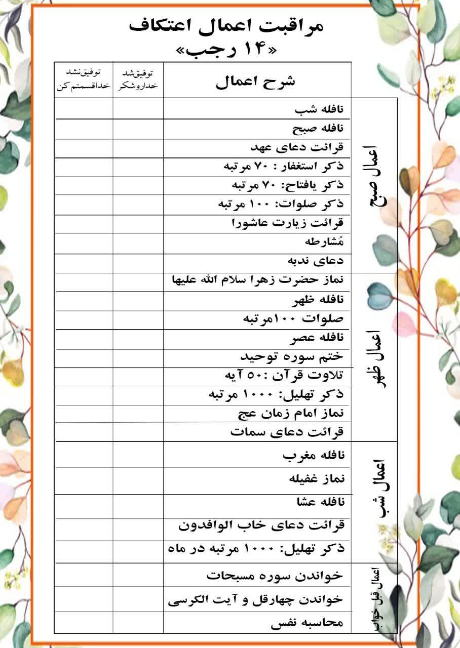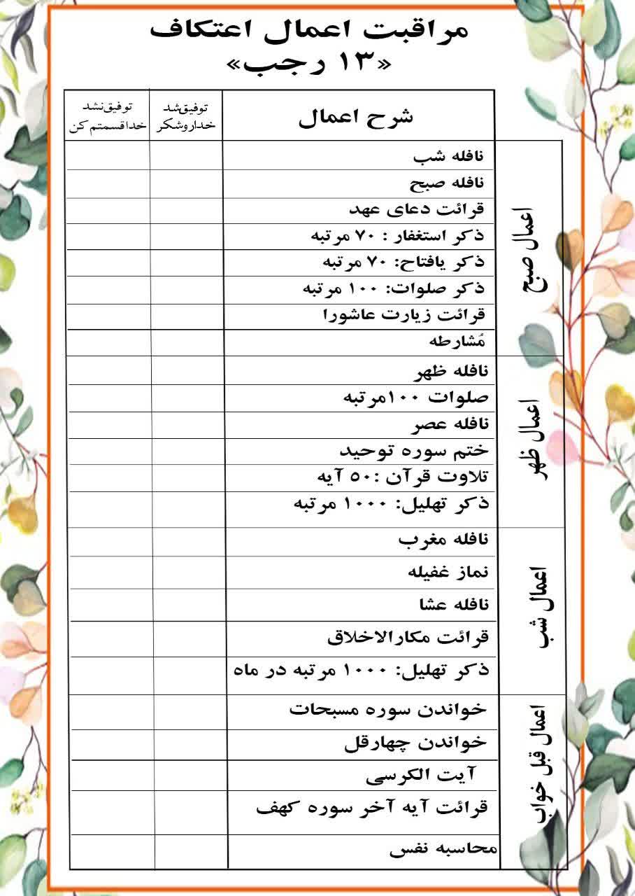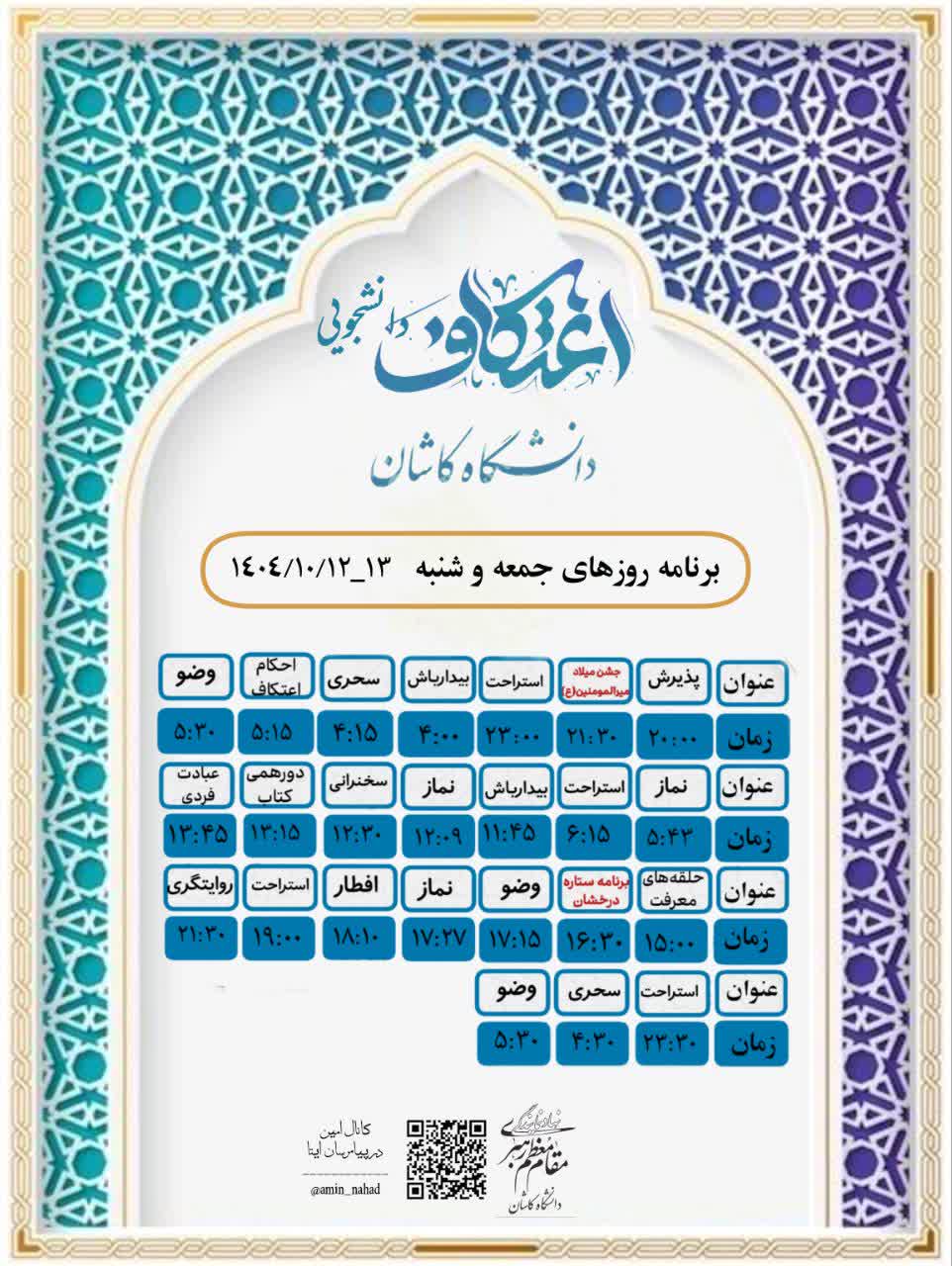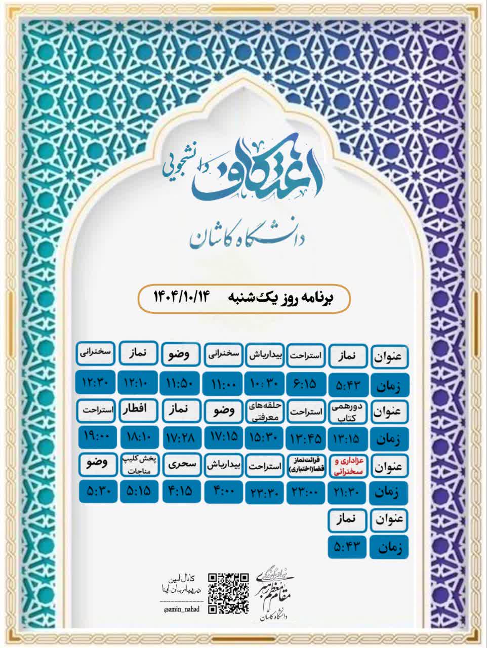 جدول زمانبندی برنامه های روز دوم اعتکاف